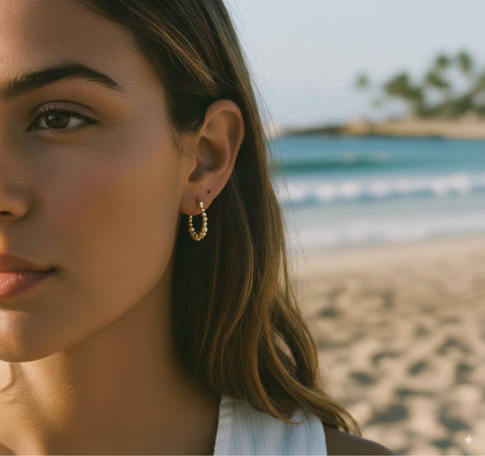 Tarnish Resistant Gold Plated Small Beaded Hoop Earrings