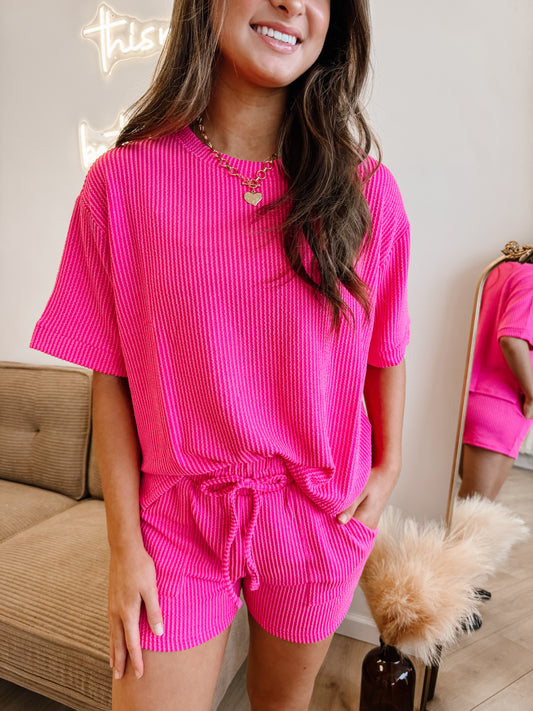 Raised Rib Short Sleeve Tee & Short Set (9 colors)