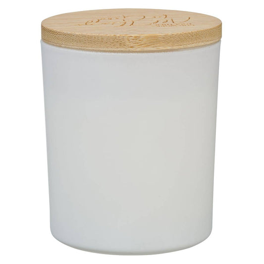 Glass Candle w/Bamboo Lid White God Works Rom. 8:28