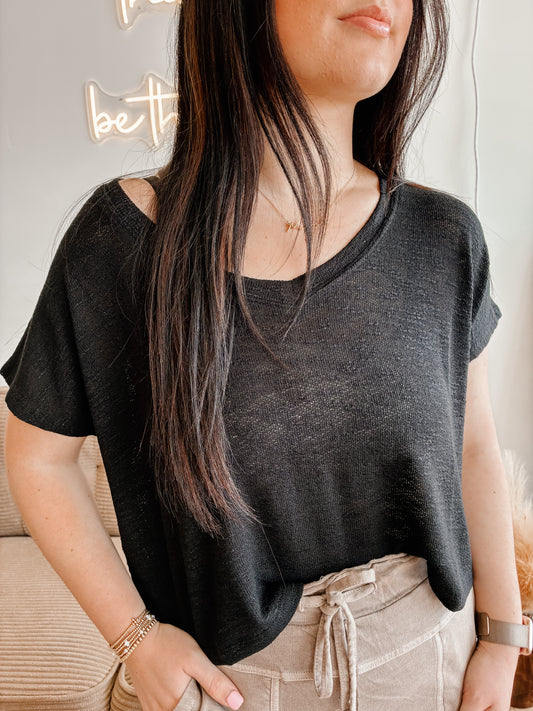 Hacci Slub V-neck Drop Shoulder Crop Top
