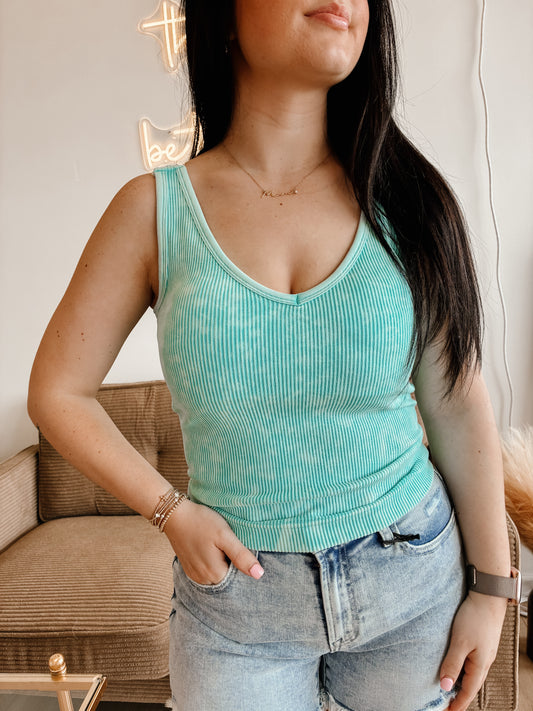Stone Washed Ribbed Seamless Tank Top W Bra Pad