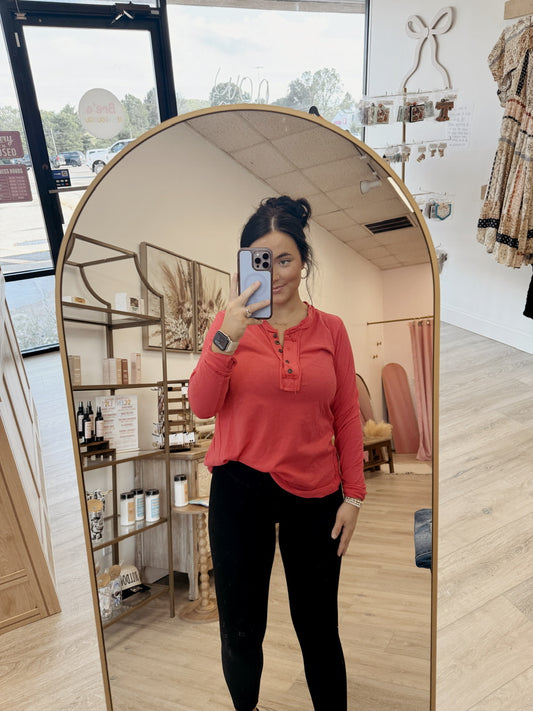 Thumb Hole Cuffs Button Closure Long Sleeve Top