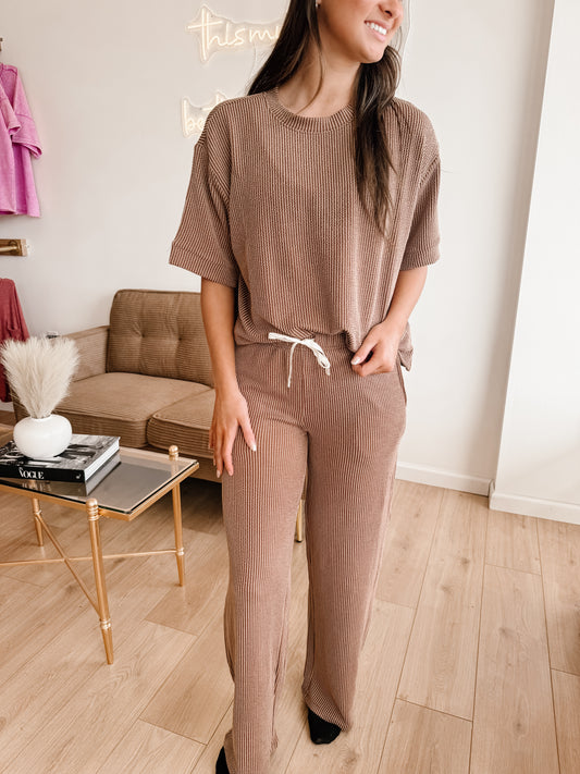 Raised Rib Short Sleeve Tee & Pants Set (9 colors)