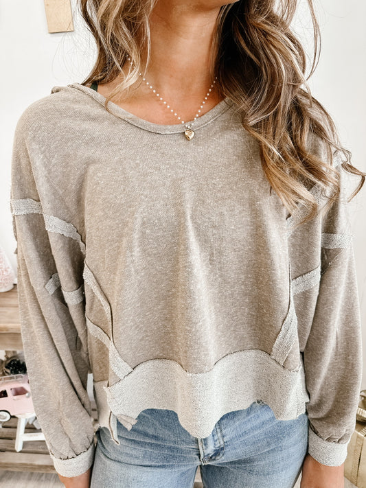 Contrast Trim Top-stitching Slit Raw Hem Hoodie (2 colors)