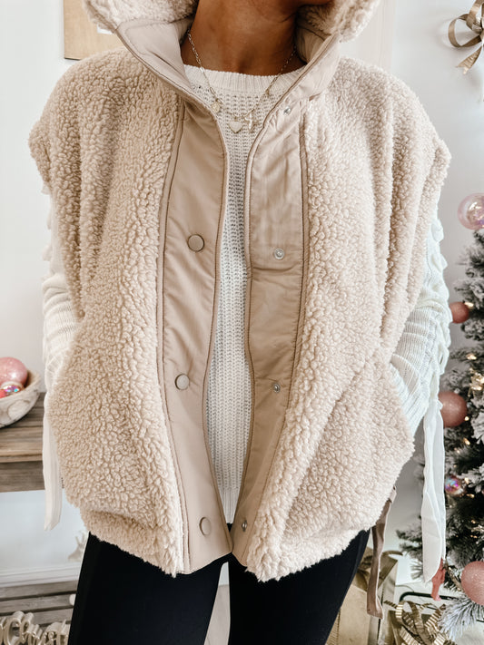 Cozy Sherpa Vest Jacket With Tie-up Side Details