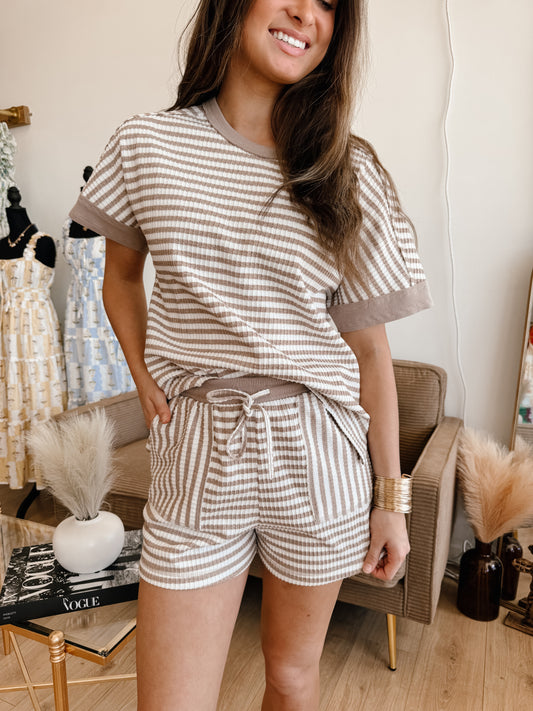 Striped Comfy Knit Top & Shorts Set