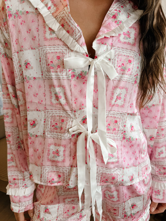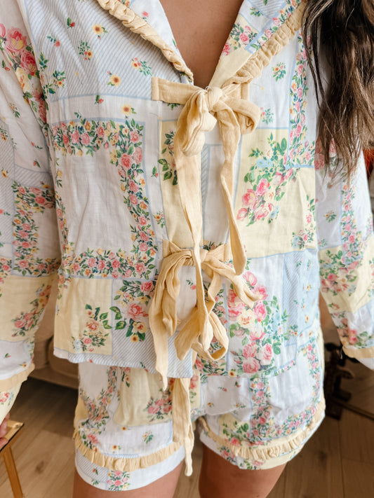 Patchwork Floral Ribbon Pajama Set