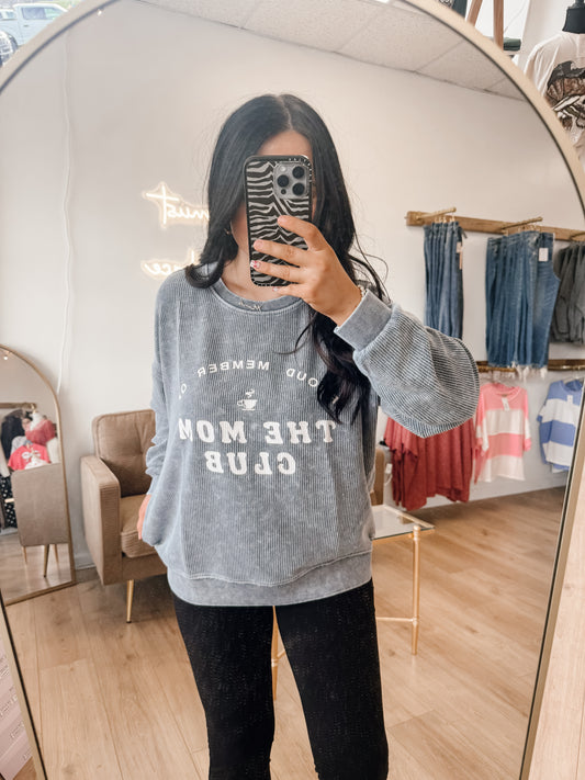 Mom Club Graphic Washed Long Sleeve Rib Knit Top