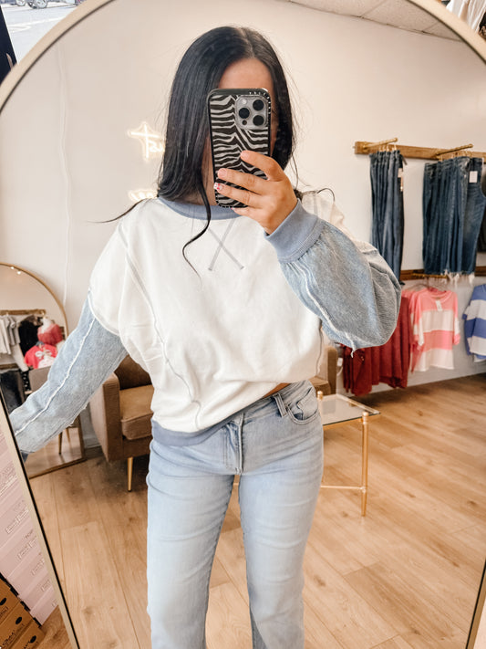 Sold outMix Media Denim Sleeve Knit Top