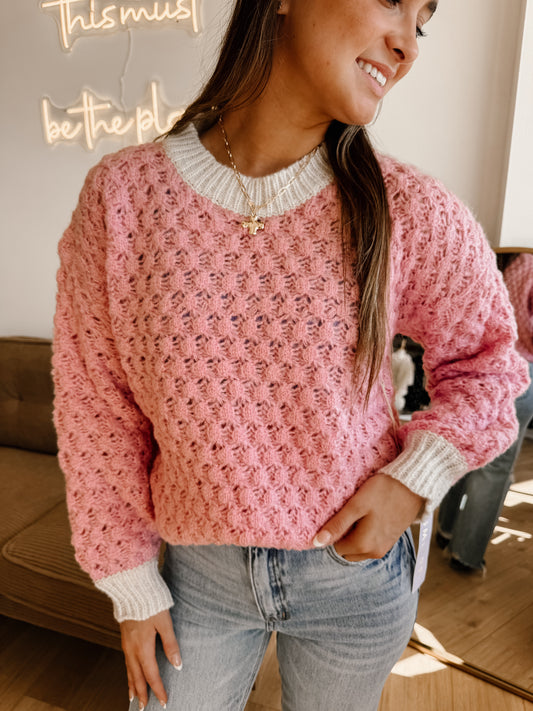 Sold outRuffle Tie-front Crochet Knit Top