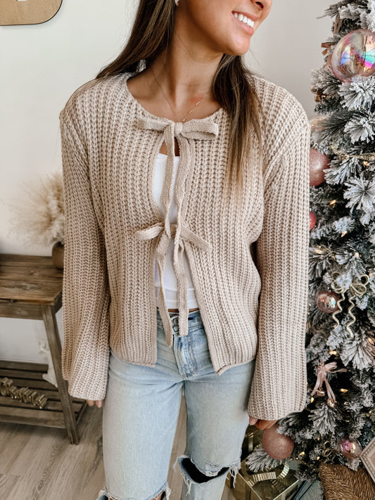 Solid Loose Knit Sweater Top With Bow Tied (3 colors)