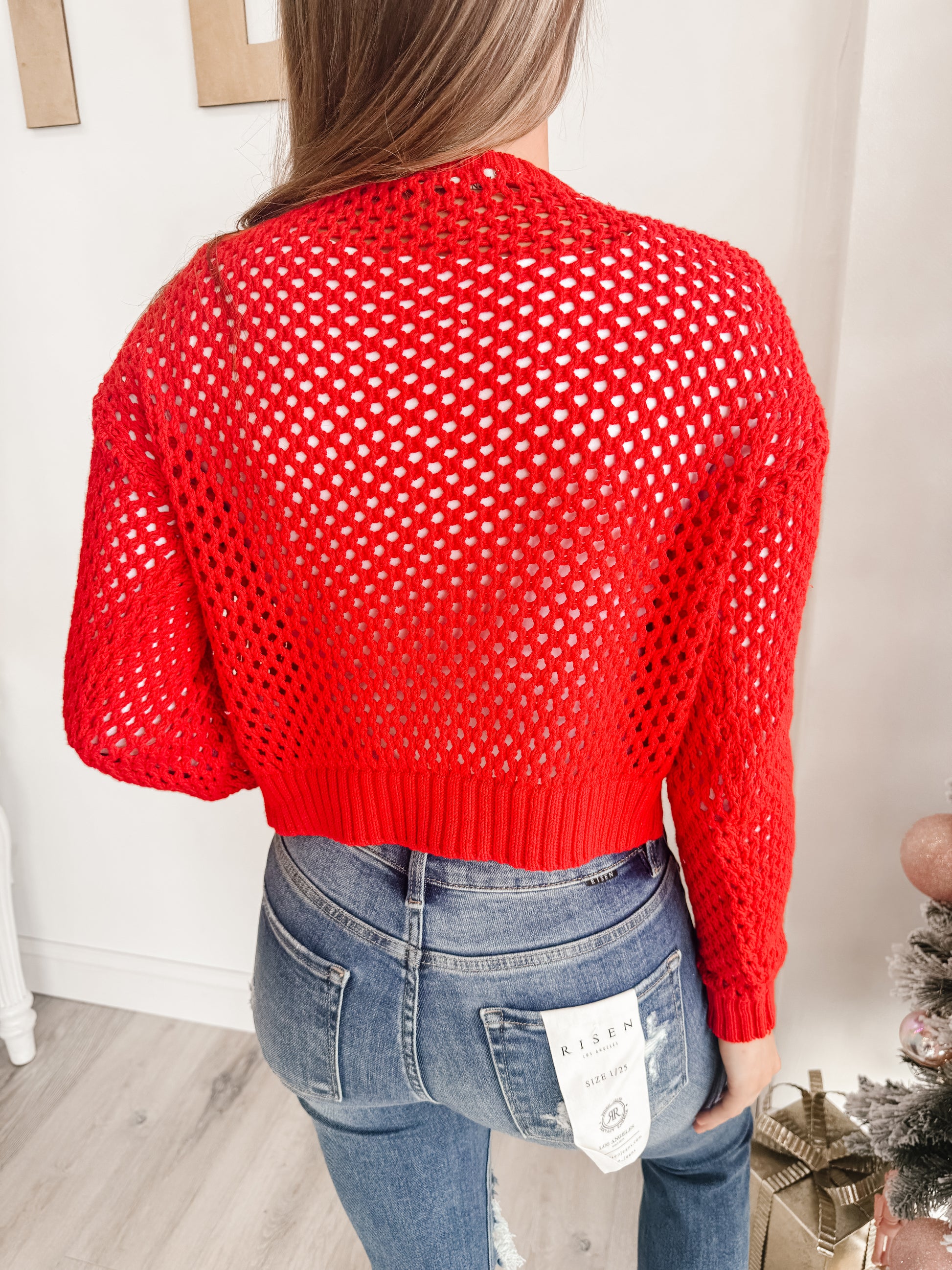 CROCHET CARDIGAN SWEATER TOTAL BODY LENGTH: 18", CHEST: 33.5" approx. - MEASURED FROM SMALL