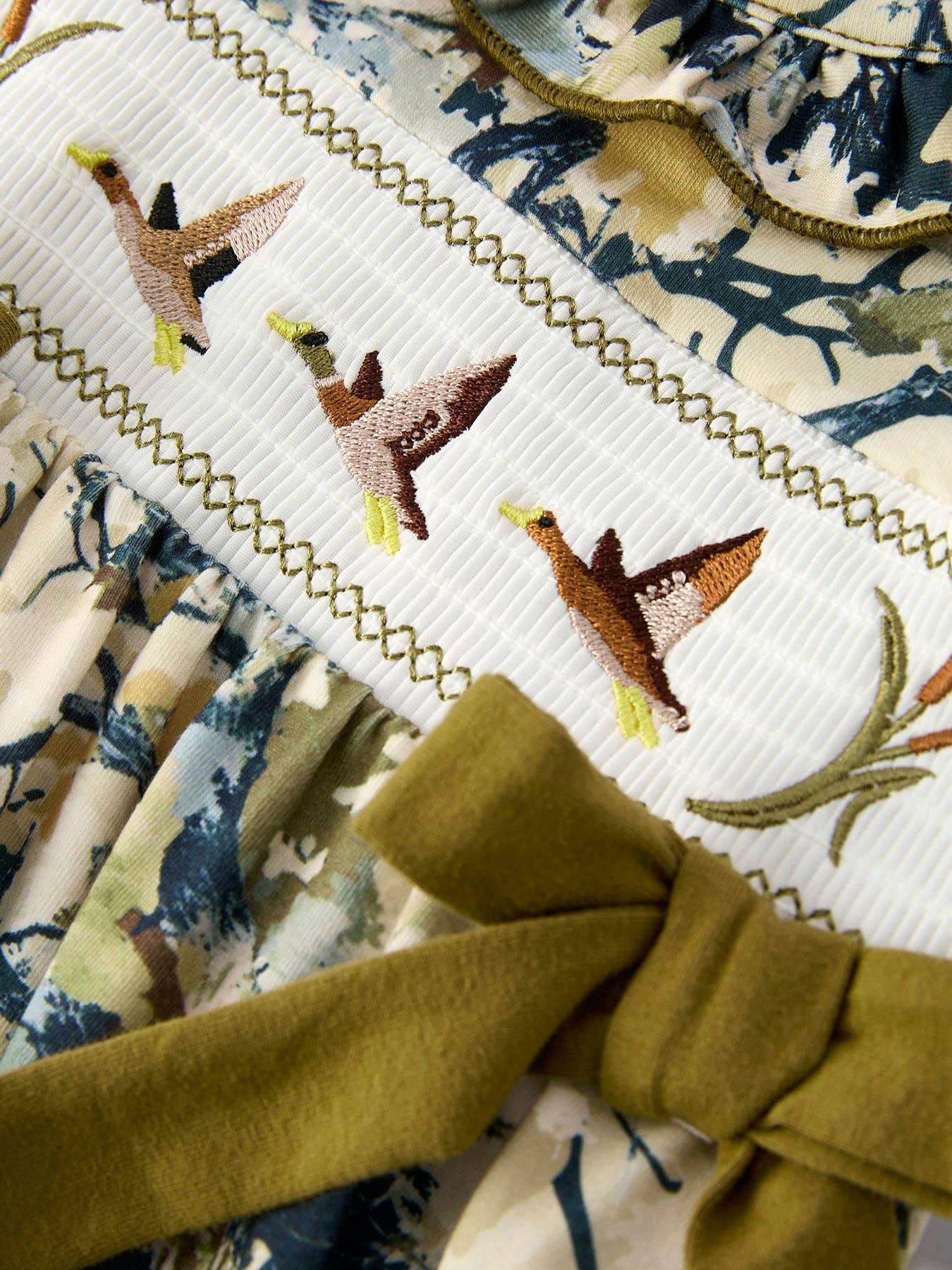 Duck Smocking Embroidery Baby Girls Camouflage Romper