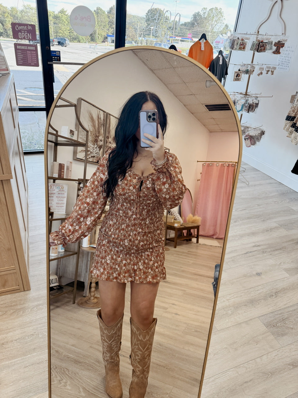Effortlessly romantic and full of charm, this Floral Smocked Mini Dress is the perfect blend of comfort and style. Featuring a flattering smocked bodice that hugs your silhouette and a flirty ruffled hemline, this dress is designed to turn heads. The long sheer sleeves add a touch of elegance, while the vibrant floral print brings a playful, feminine touch.