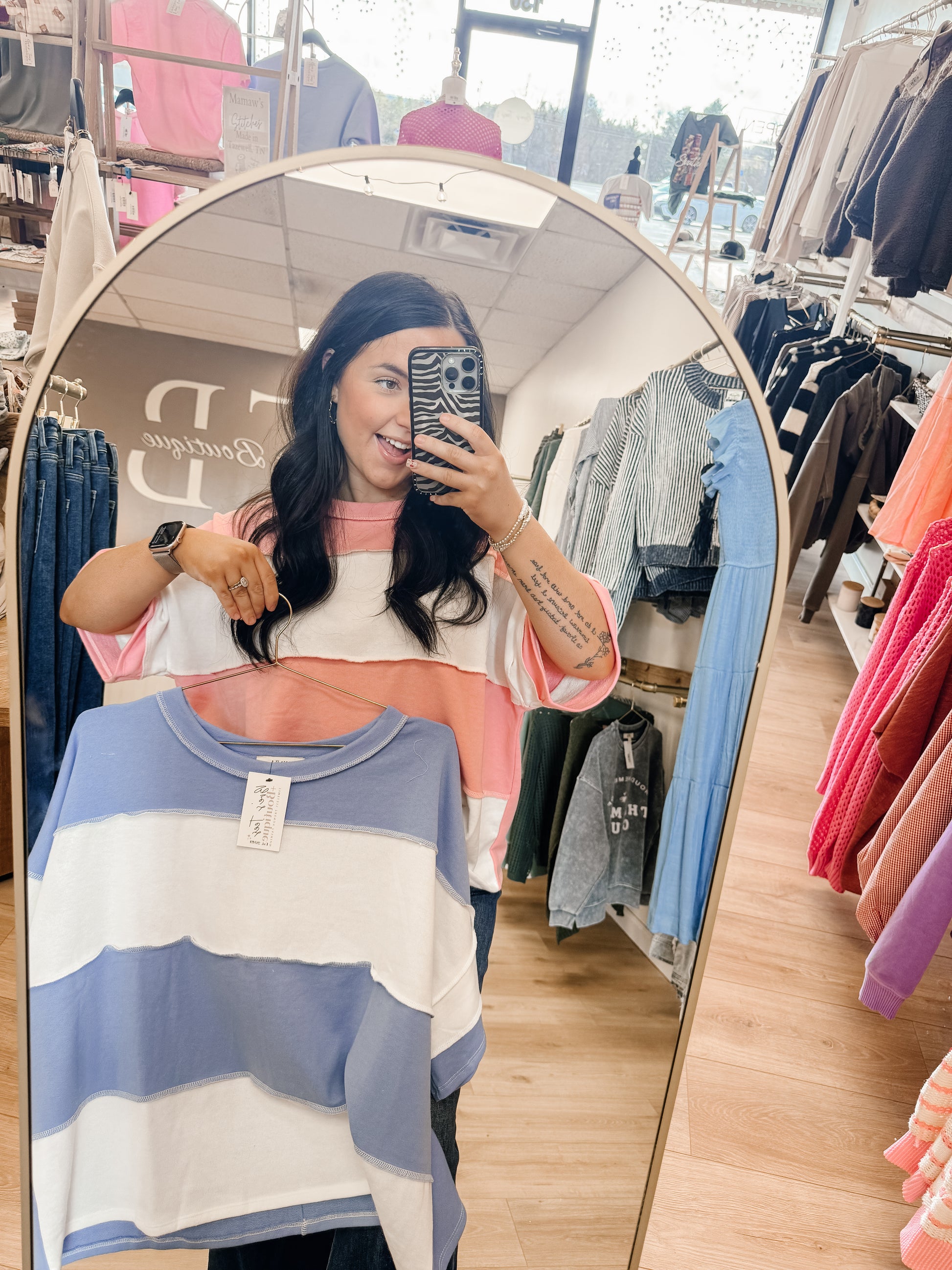 FRENCH TERRY COLOR BLOCK EXPOSED SEAM TOP