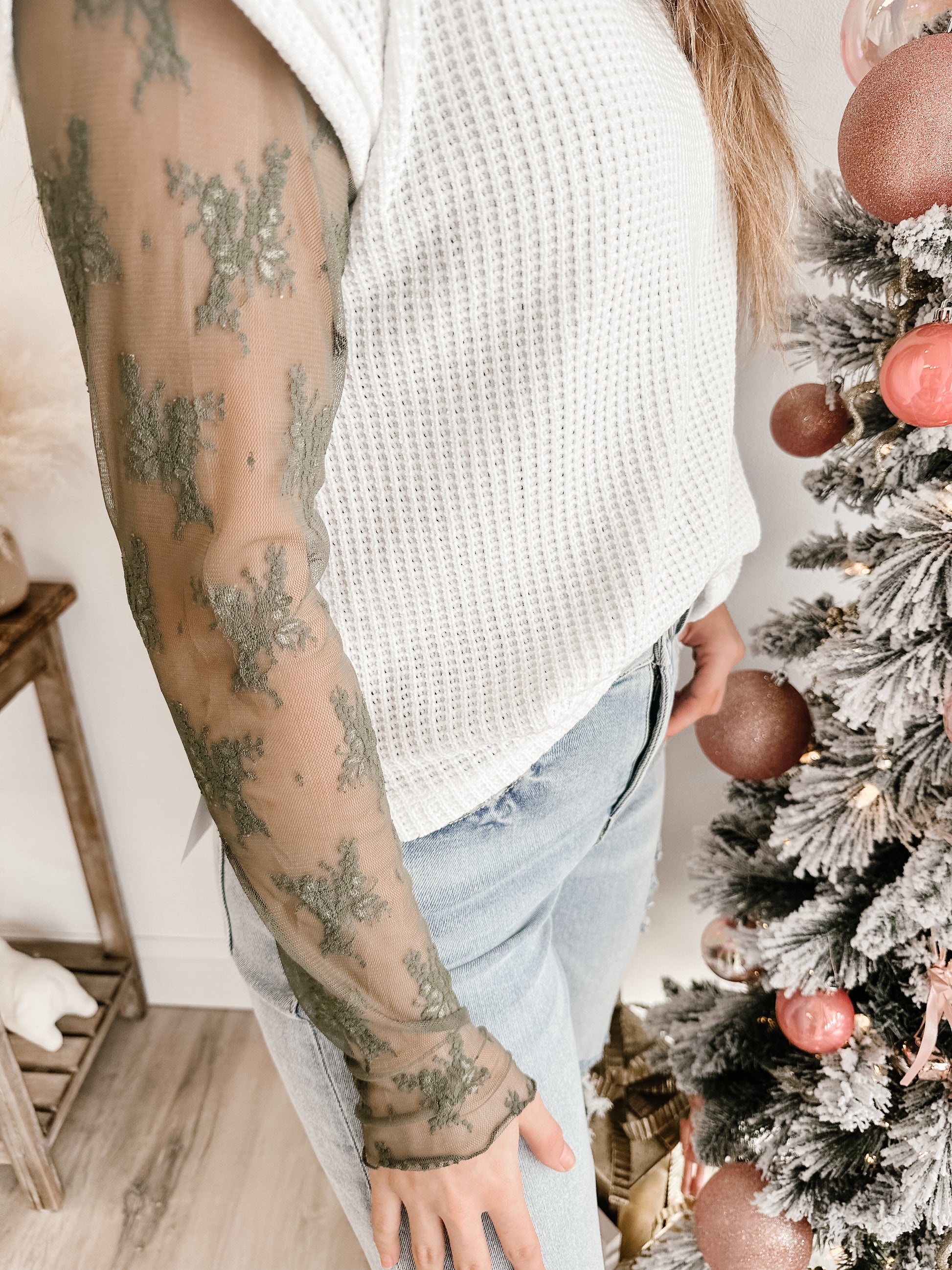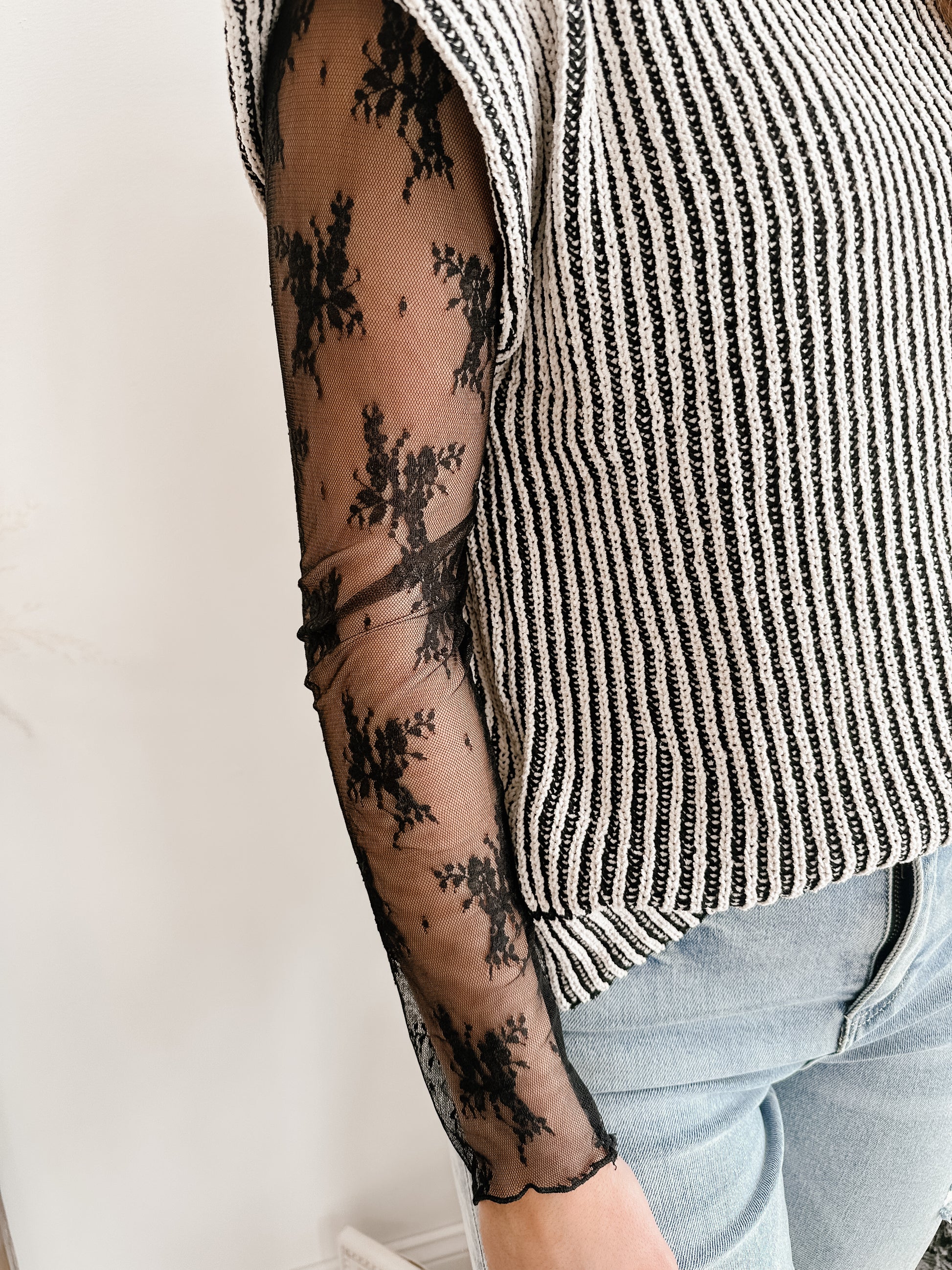 LACE SEE-THROUGH LAYERING TOP TOTAL BODY LENGTH: 26", BUST: 31" approx. - MEASURED FROM SMALL