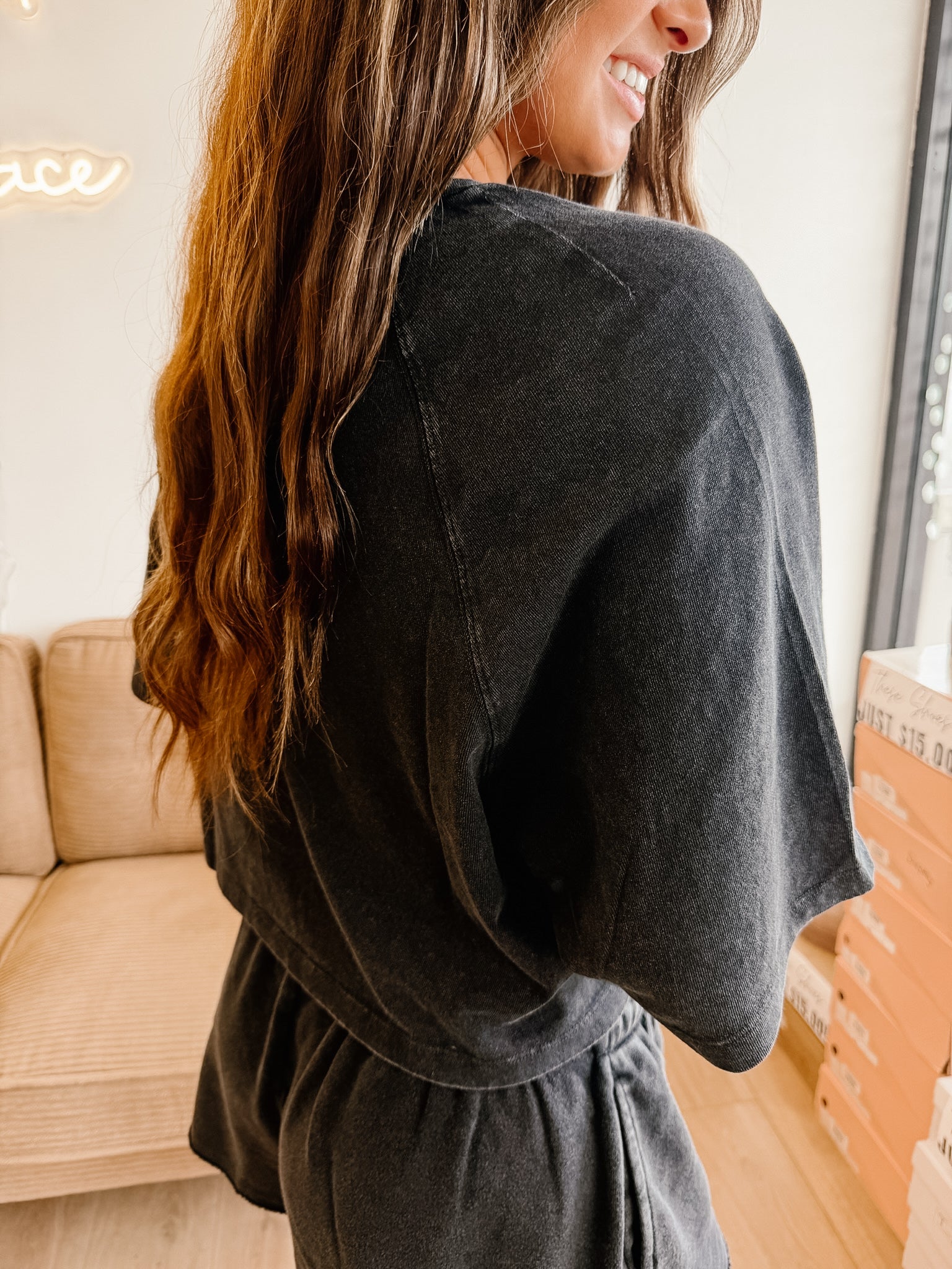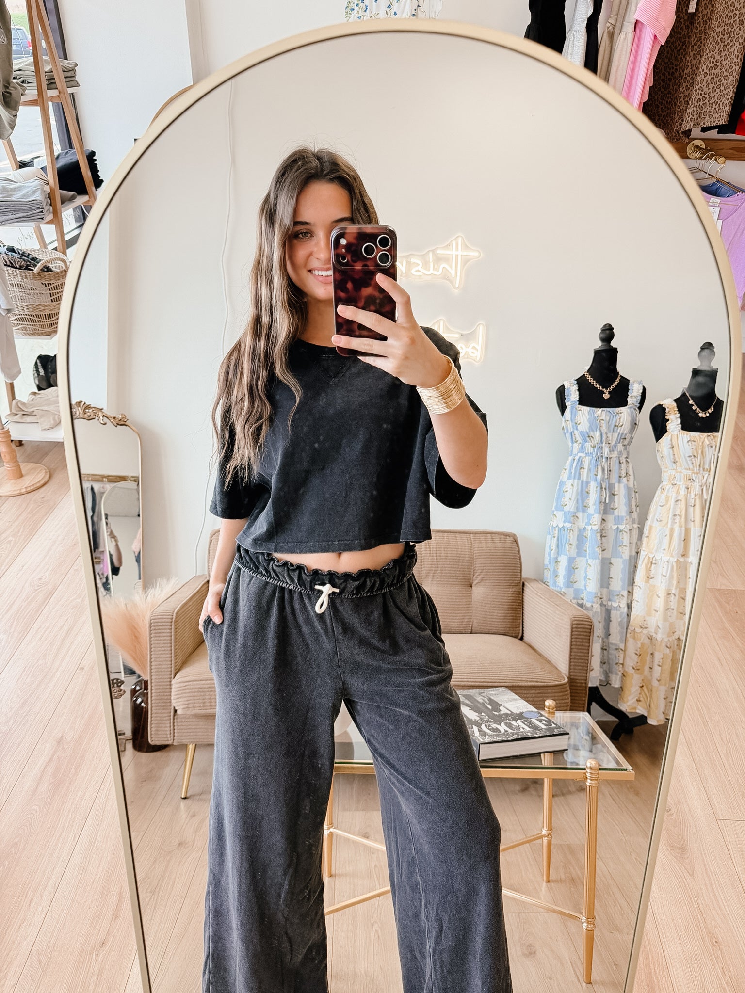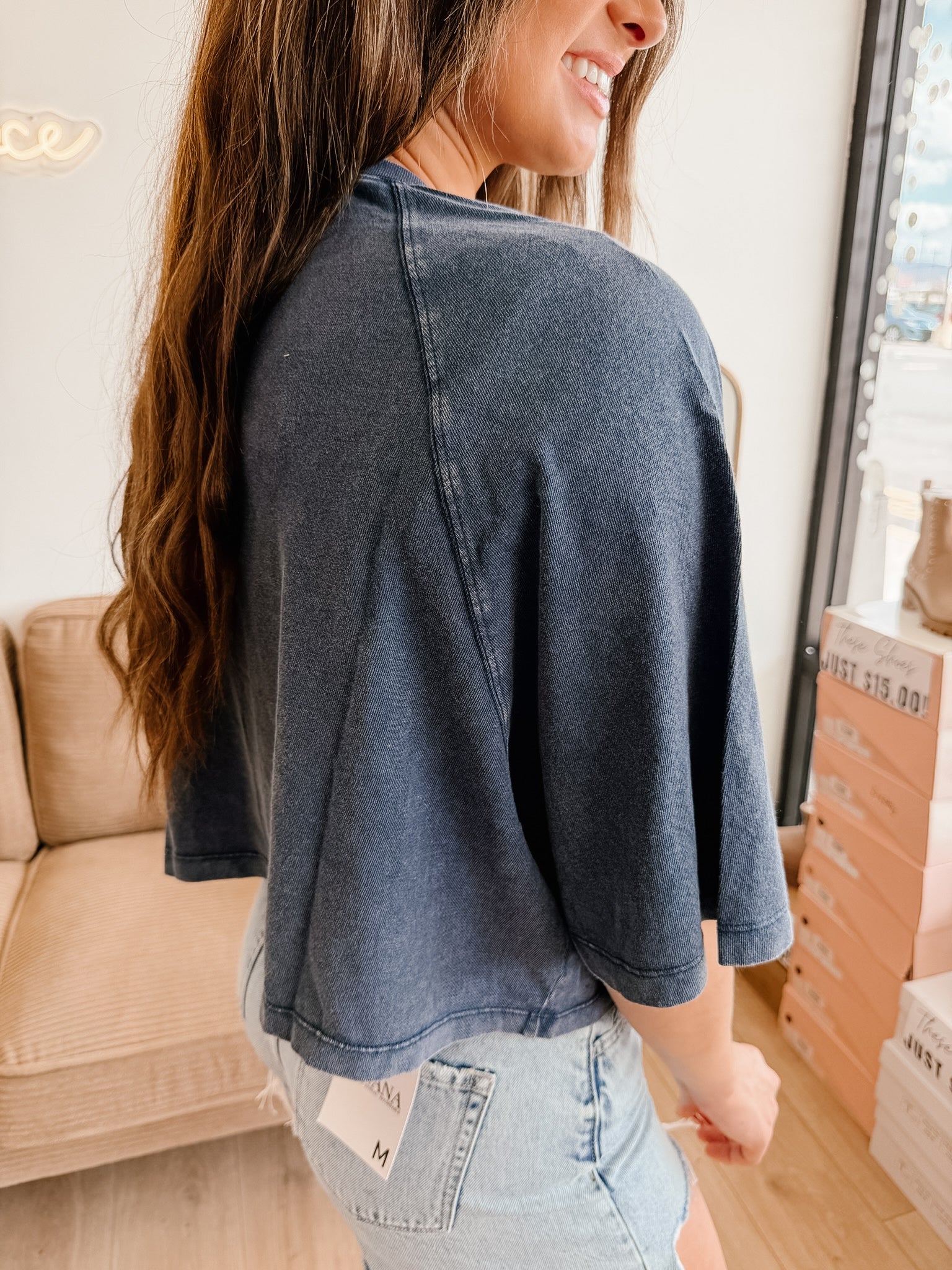 On days when you want to look casual and cute, this tee is all you need. Featuring a mineral wash construction, this tee has a round neckline and short sleeves. The slightly oversized silhouette ends at a cropped hem.