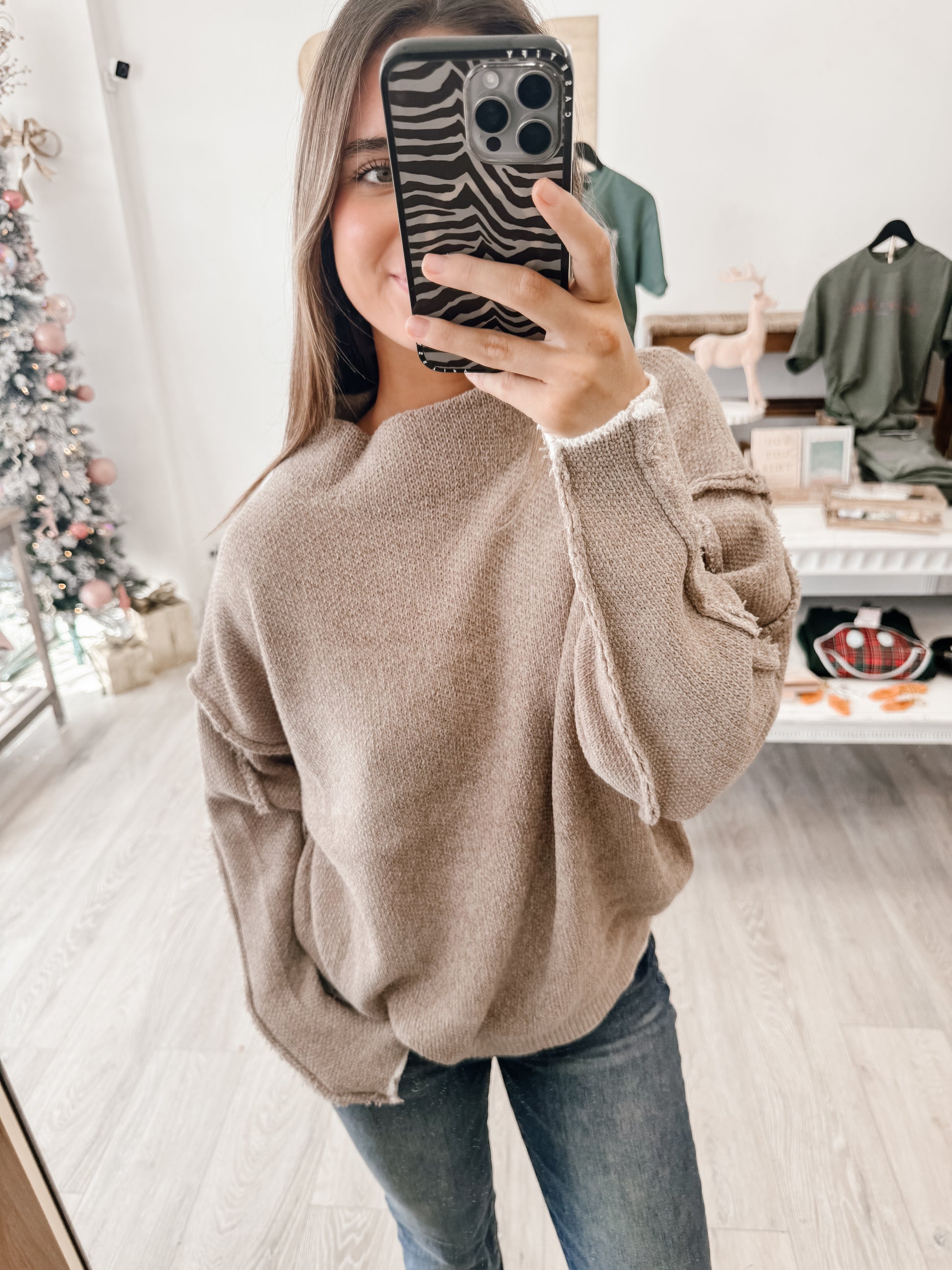 Oversized Mock Neck Raw Seam Chenille Sweater (3 COLORS)