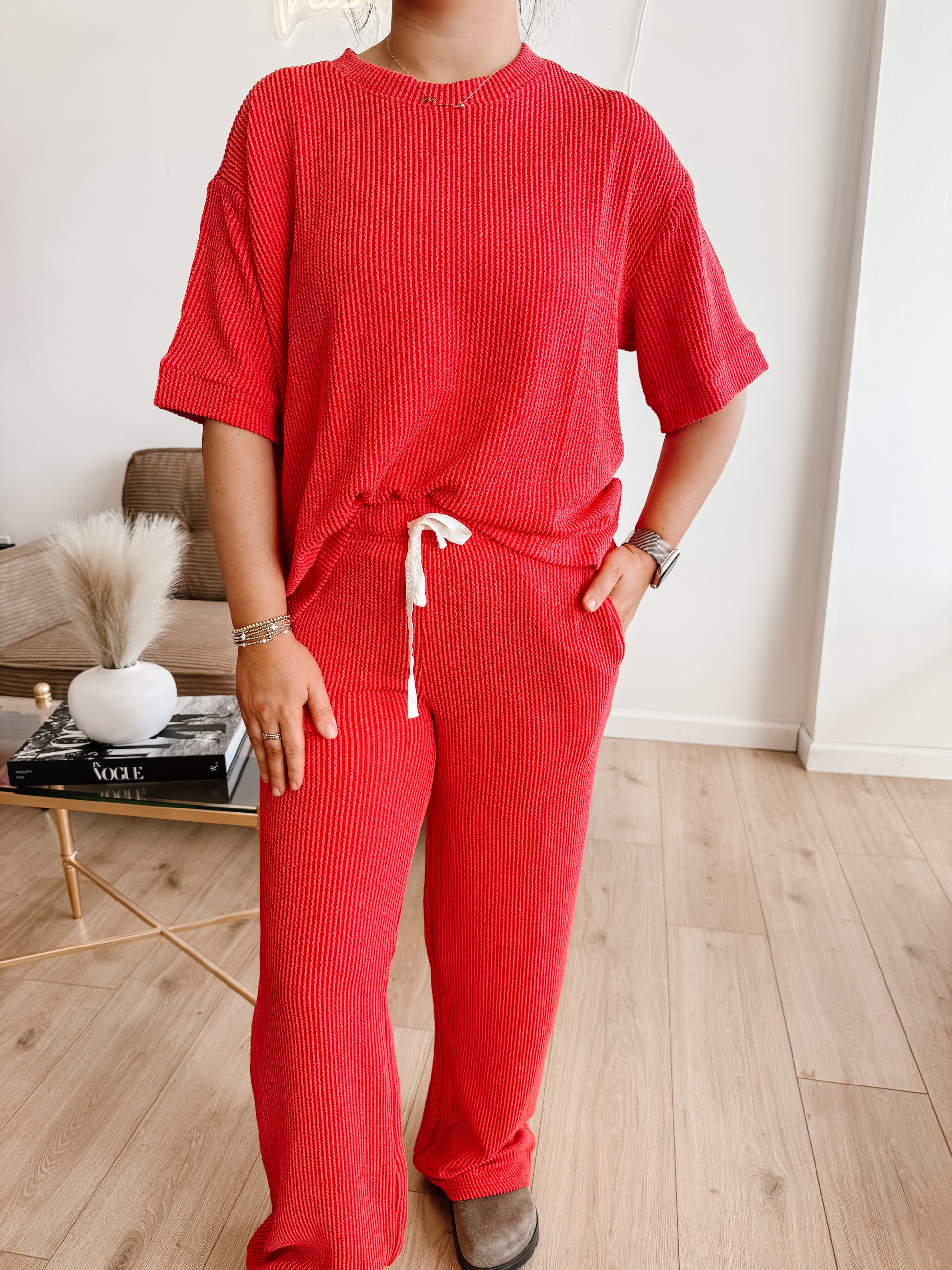 Raised Rib Short Sleeve Tee & Pants Set (9 colors)