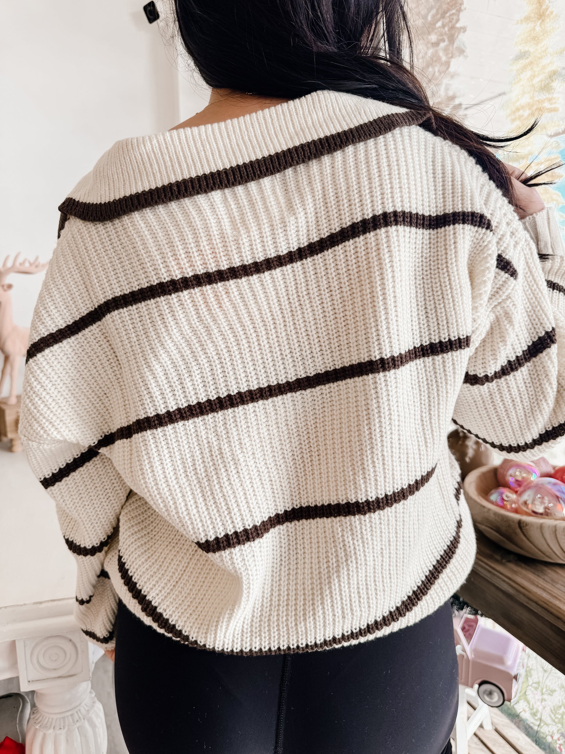 -RIBBED COLLARED STRIPED SWEATER -LONG SLEEVES