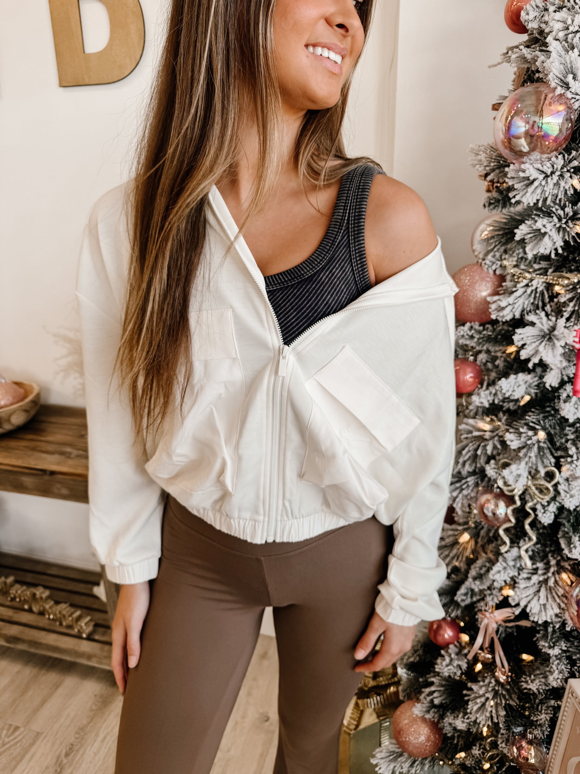 SOFT SCUBA FULL ZIP HOODIE JACKET -BIG FLAP POCKETS FRONT TOTAL BODY LENGTH: 22", BUST: 52" approx. - MEASURED FROM SMALL