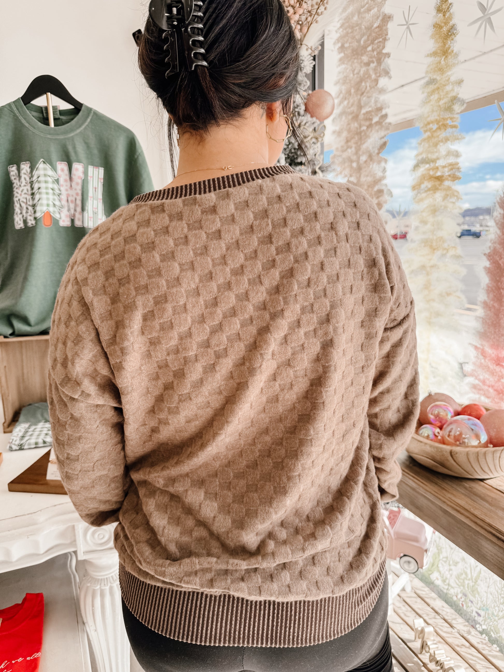 Soft Textured Checker Knnit Pullover Sweatshirt