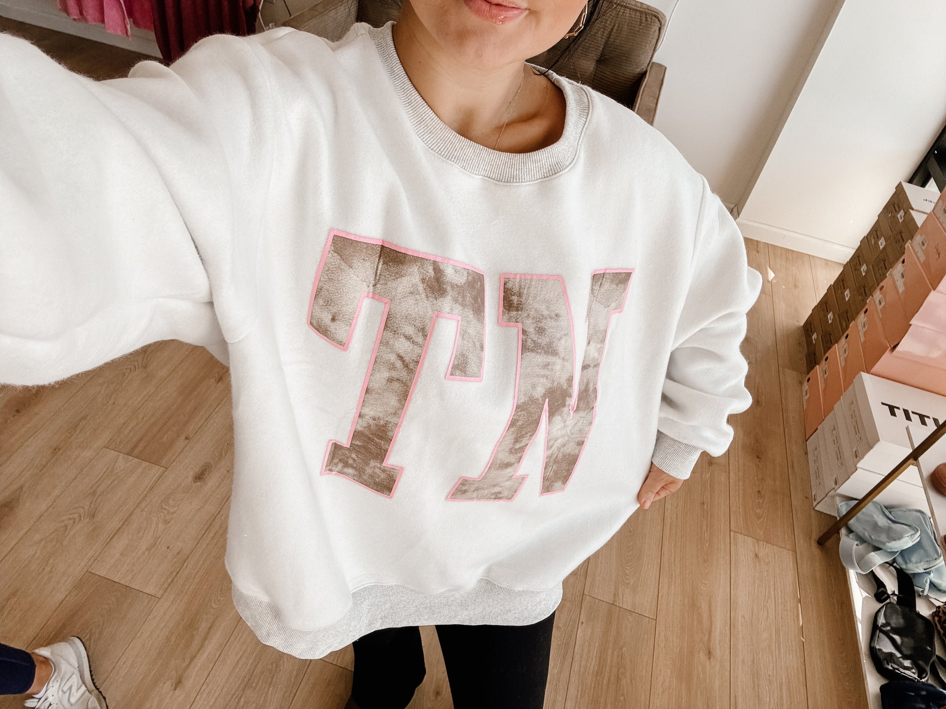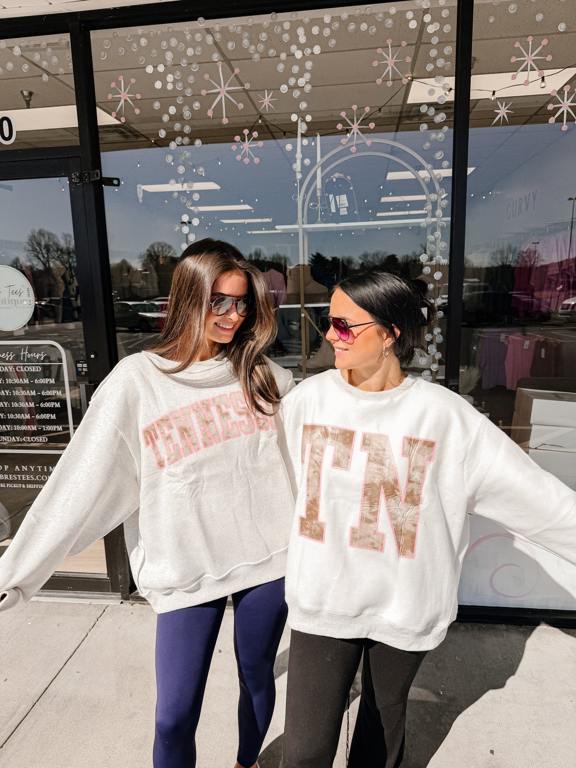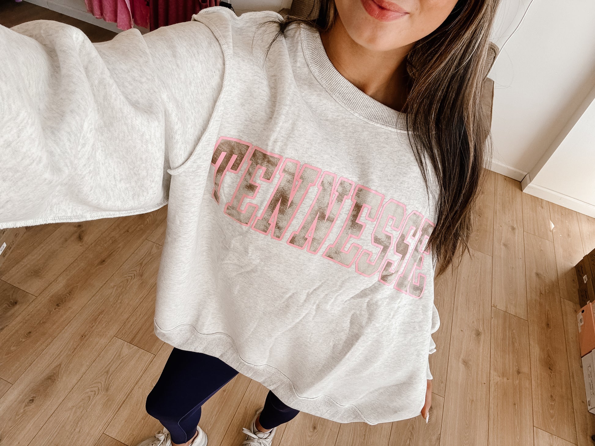 'TENNESSEE' Camo Reversible Varsity Fleece Sweatshirt - A versatile reversible sweatshirt designed with an easy, relaxed silhouette that offers two distinct looks in one piece. - Oversized proportion and dropped shoulders create a cozy, effortless shape that drapes naturally. - Each side features bold varsity-style lettering, giving a playful yet casual character depending on how you style it. - Soft fleece interior provides warmth while maintaining a lightweight hand feel suitable for everyday wear. Fabric & Fit - Made with a balanced cotton-poly blend that feels plush on the skin while resisting excessive weight. (52% Cotton, 48% Polyester) - Relaxed, roomy fit designed for easy layering and natural movement throughout the day. - Reversible construction crafted so both sides look clean and intentional, offering two outfit options effortlessly. A playful and functional sweatshirt that adapts to your day—wear it either way and enjoy twice the styling freedom with zero effort.