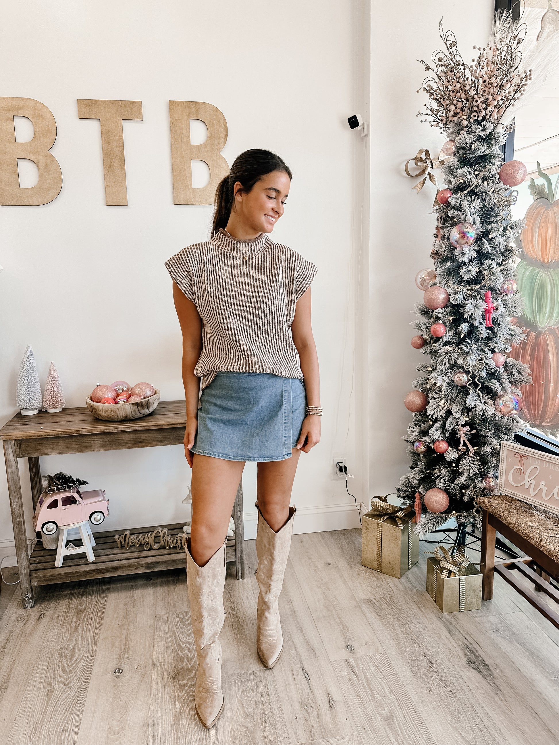 - Two Tone Ribbed Knit Sweater Vest - Mock Neck - Sleeveless - Thanksgiving Outfit